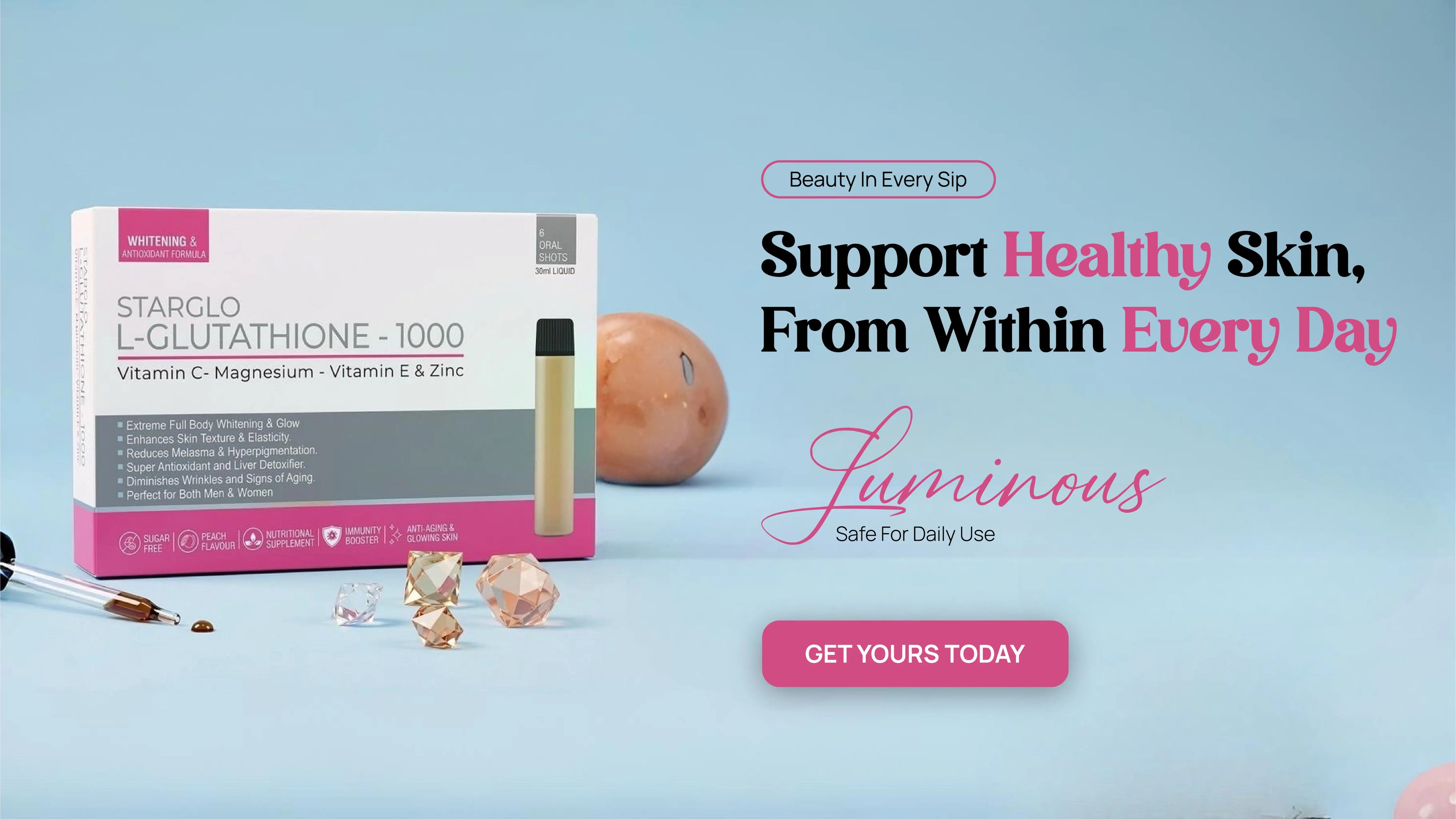 STARGLO SHOTS GLUTATHIONE 1000Mg - PACK OF 6 SHOTS - 30ML