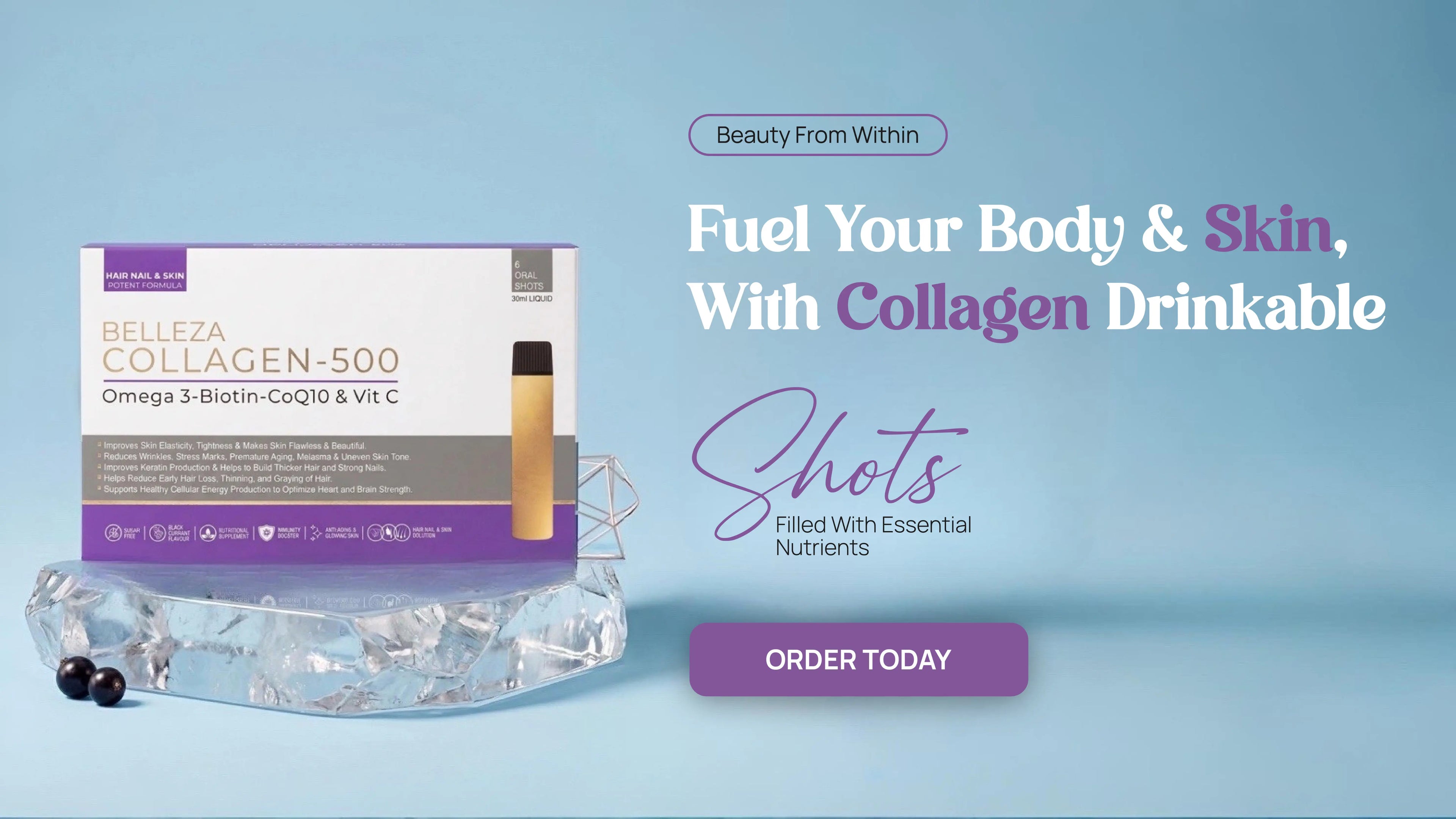 BELLEZA SHOTS COLLAGEN + BIOTIN PACK OF 6 SHOTS - 30ML